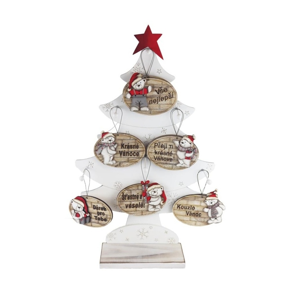 Roztomilá dekorace ve tvaru medvídka s milým nápisem je ideálním doplňkem vánoční výzdoby i celoroční dekorace v rustikálním nebo přírodním stylu. Vyrobeno z lehkého dřeva, doplněno o jemné detaily a přírodní provázek pro zavěšení. Ozdoba v mixu provedení. Pokud si přejete konkrétní variantu, napište ji do poznámky, pokusíme se vyhovět. V případě nedostupnosti bude odeslán náhodný kus.
