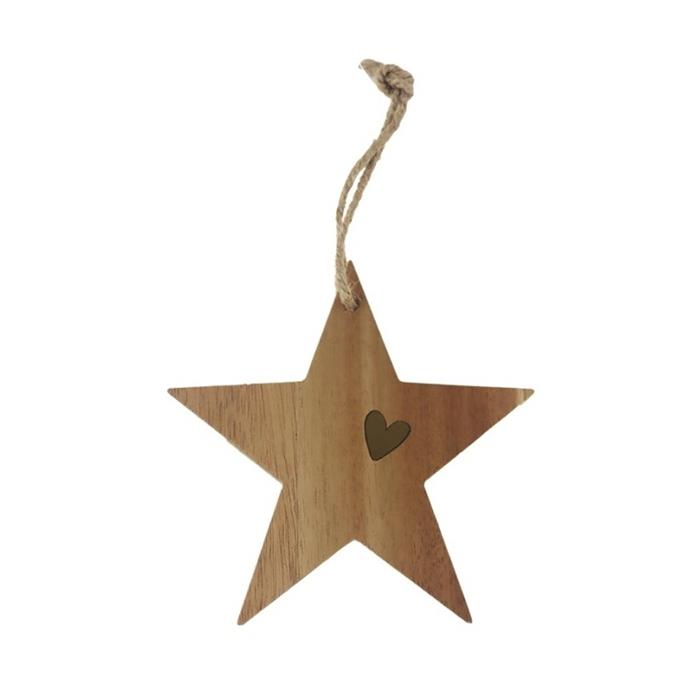 Ozdoba hvězda se srdcem dřevěná přírodní 12cm