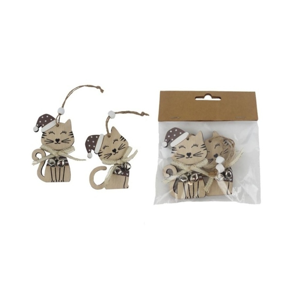 Roztomilé vánoční ozdoby ve tvaru kočiček s čepicí a malou rolničkou potěší každého milovníka zvířat i originálních dekorací. Vyrobeny z lehkého dřeva, doplněny o kovovou rolničku a provázek na zavěšení. Skvělé na stromeček, do vázy nebo jako doplněk k dárku.