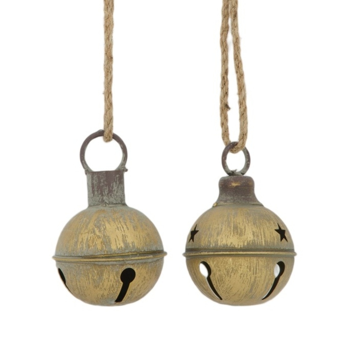 Ozdoba kovová rolnička zlatý antik mix 12cm