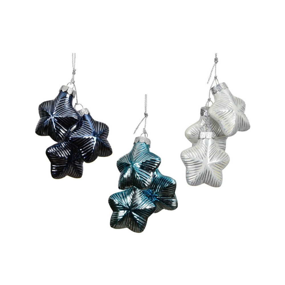 Ozdoba skleněná hvězdá bílá/modrá mix 3ks