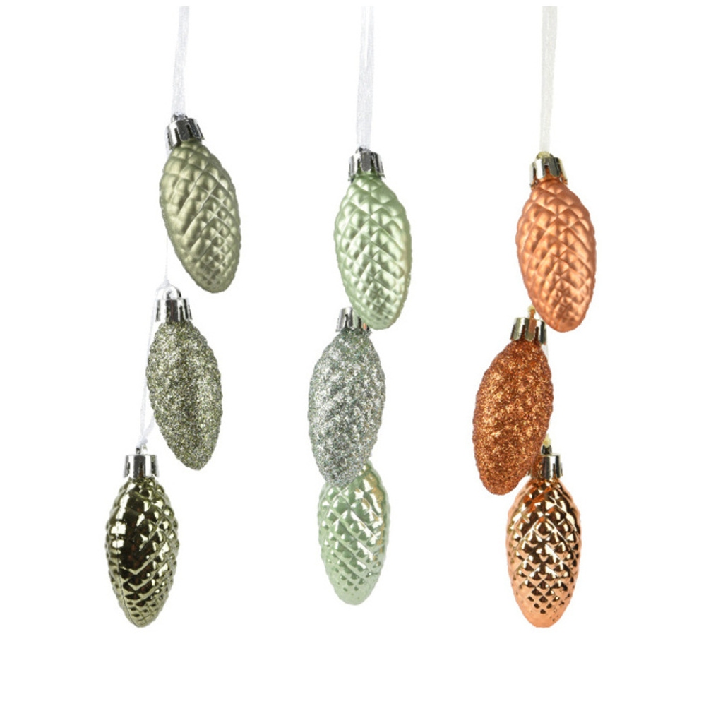Ozdoba plastové šišky bronzové/zelené mix 3ks