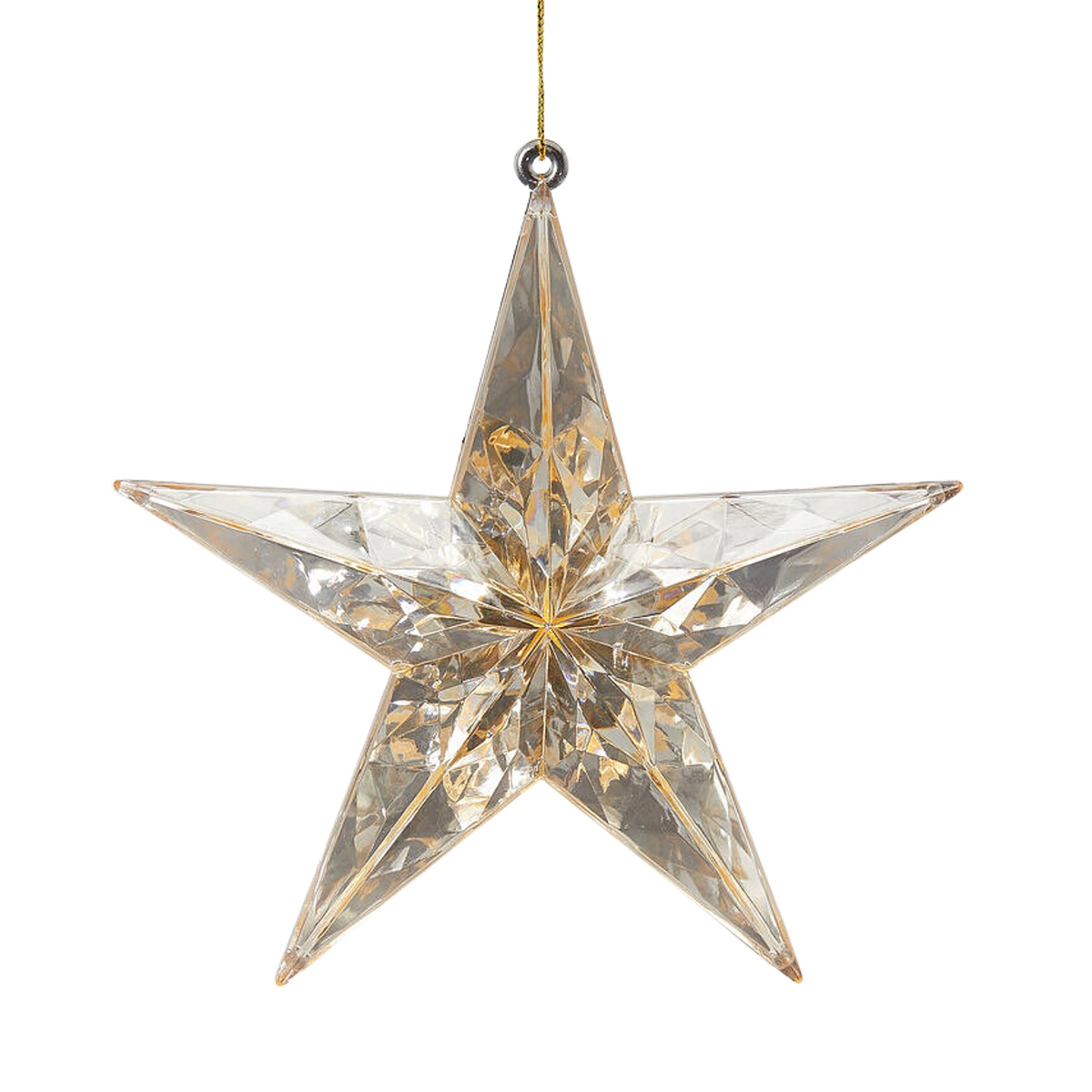Zářivá plastová vánoční ozdoba ve tvaru diamantové hvězdy vnese do vaší sváteční výzdoby lesk, eleganci a lehkost. Její broušený povrch dokonale odráží světlo a vytváří krásný třpytivý efekt, který připomíná skutečný krystal. Díky kvalitnímu plastovému materiálu je ozdoba lehká a nerozbitná, takže je ideální i pro domácnosti s dětmi či domácími mazlíčky.
