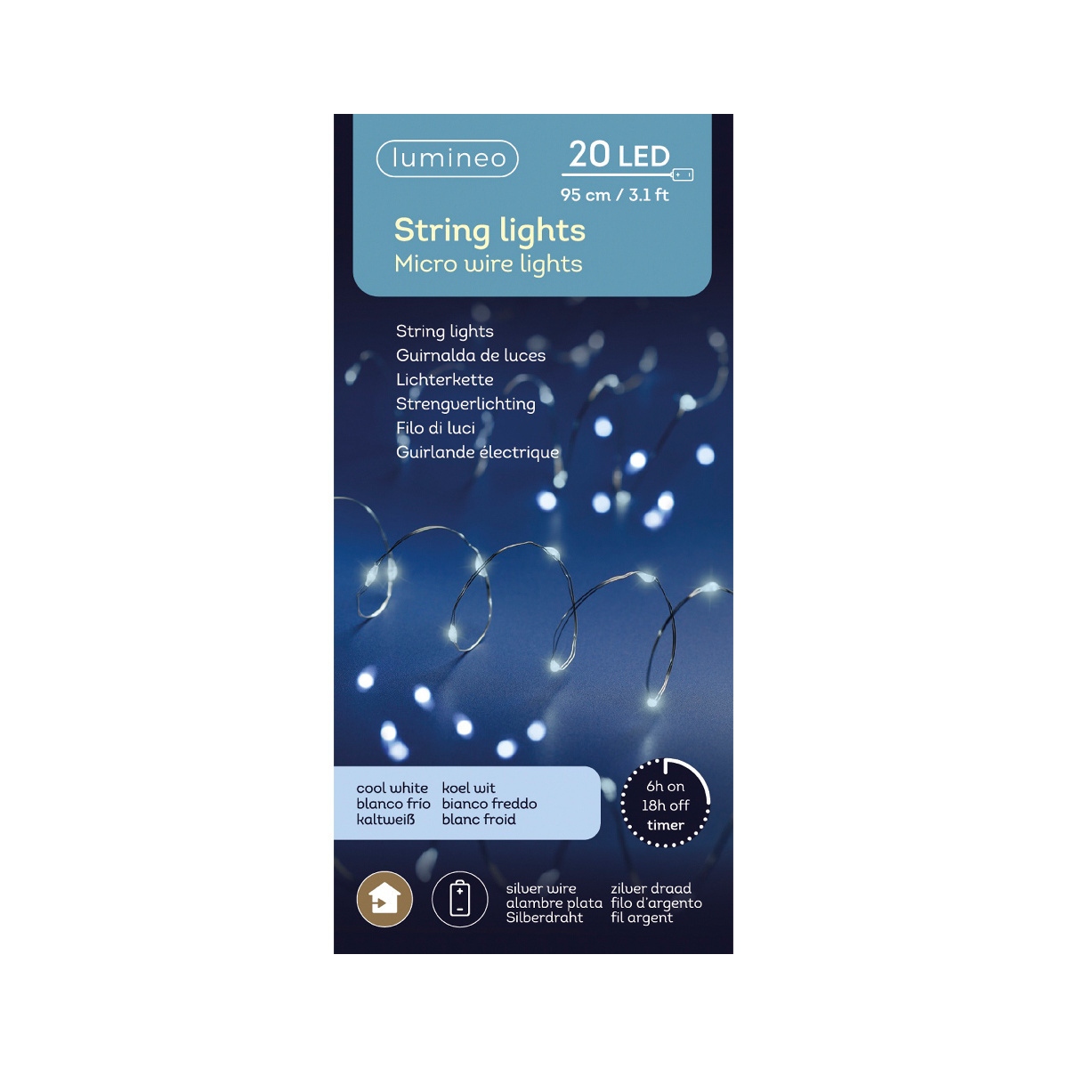 Elegantní a jemný světelný řetěz s 20 microLED diodami v studeně bílé barvě, který dodá vašemu prostoru moderní a slavnostní vzhled. Díky stříbrnému drátku působí nenápadně a decentně i přes den.