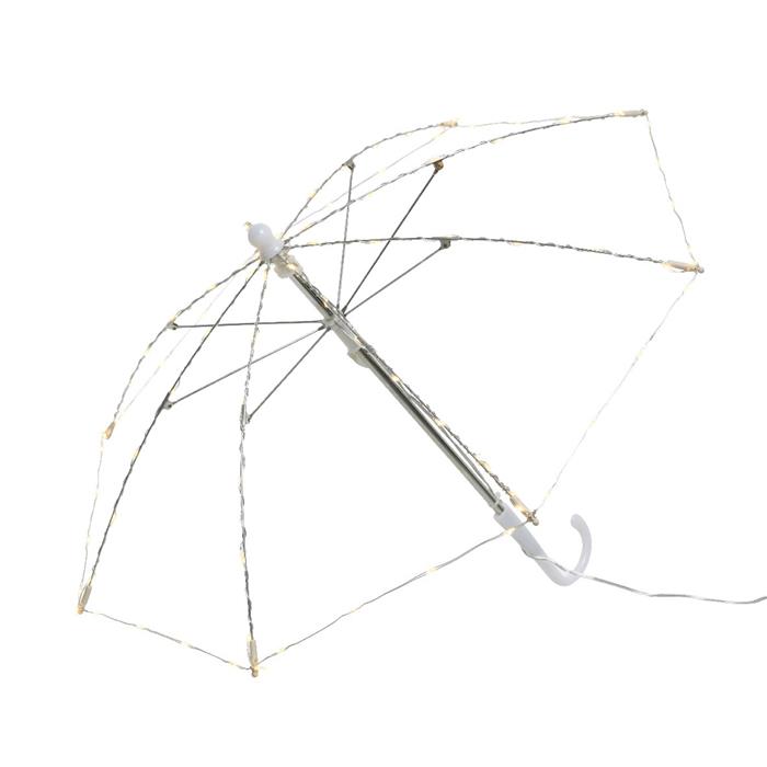 Originální svítící dekorace ve tvaru deštníku, osazená 156 microLED světly v teplé bílé barvě, přináší do vašeho prostoru jedinečnou atmosféru. S průměrem 80 cm je ideální jako světelný akcent do interiérů, ale díky kvalitnímu provedení ji lze použít i venku za suchého počasí.