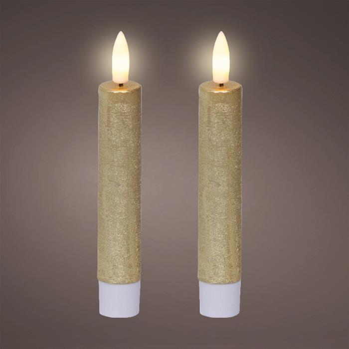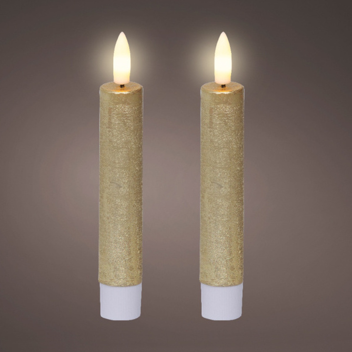 Svíčka kónická zlatá 1LED s časovačem na baterie 14,5cm/2ks