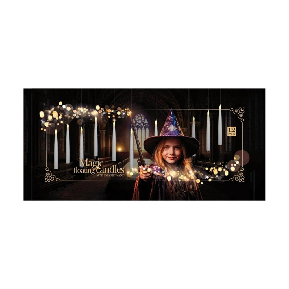 Vytvořte si doma kouzelnou pohádkovou atmosféru s touto sadou levitujících LED svíček a kouzelnou hůlkou! Dvanáct kónických svíček s teplým bílým světlem působí dojmem, že se vznášejí ve vzduchu. Jsou ideální pro vánoční výzdobu, večírky, svatby nebo tematické dekorace. Každá svíčka je vybavena LED diodou, časovačem na 6 hodin a funguje na baterie, takže nepotřebujete žádné kabely. Součástí balení je také dálkový ovladač, kterým můžete svíčky pohodlně zapínat, vypínat nebo měnit režimy svícení.