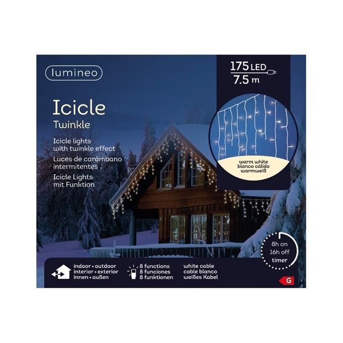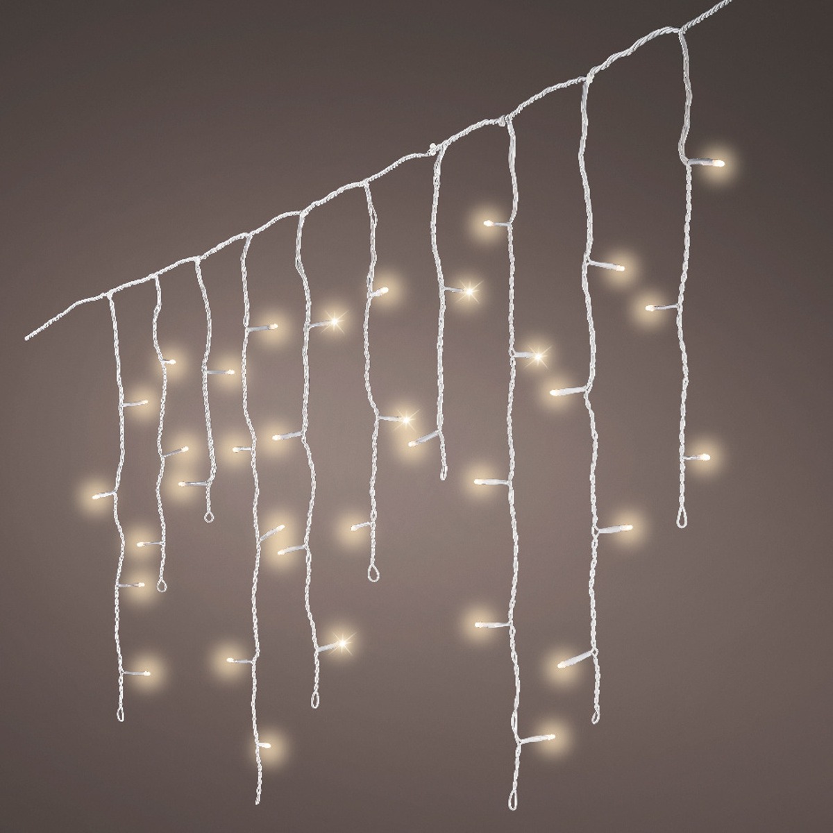 Proměňte svůj dům v zimní pohádku se světelnou záclonou. Tento řetěz s 175 LED diodami v příjemné teplé bílé barvě imituje rampouchy a díky jemnému třpytivému efektu dodá vaší výzdobě kouzelnou atmosféru. Záclona nabízí 8 světelných funkcí a praktický časovač (8 h zapnuto / 16 h vypnuto), takže se rozsvítí přesně tehdy, kdy potřebujete. Díky bílému kabelu působí elegantně a neruší ani ve dne. Vhodná je pro venkovní i vnitřní použití.