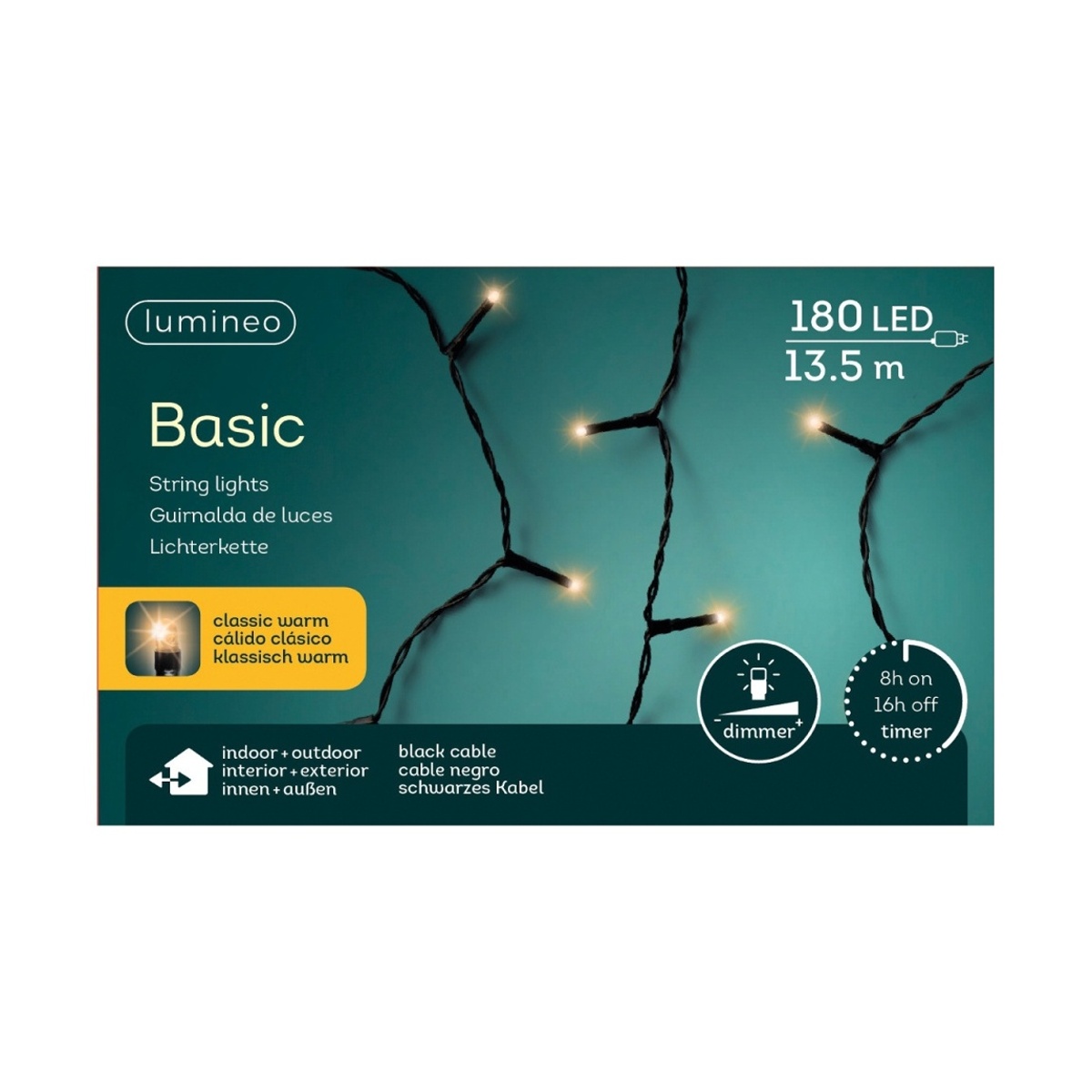 Řetěz svítící venkovní Basic 180LED bílá s časovačem, stmívačem černý 13,5m