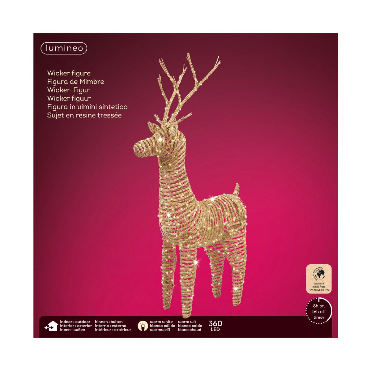 Vytvořte kouzelnou vánoční atmosféru s touto elegantní svítící dekorací. Tato venkovní i vnitřní dekorace je vyrobena z přírodně působícího proutěného materiálu v hnědém odstínu a doplněna o 360 microLED světýlek v teple bílé barvě, které zajistí jemné a útulné osvětlení. Díky integrovanému časovači (8 h svítí / 16 h vypnuto) je používání velmi pohodlné a energeticky úsporné. Dekorace je vysoká 104 cm, a proto se stane výrazným prvkem každé zahrady, terasy nebo obývacího pokoje.