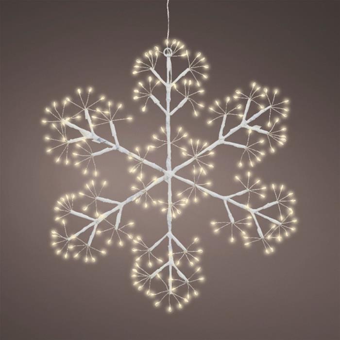 Krásná světelná dekorace ve tvaru vločky, která dodá vašemu domovu kouzelnou zimní atmosféru. Díky 216 teple bílým LED diodám působí příjemně hřejivým dojmem a stane se ozdobou jak venku, tak uvnitř. Dekorace je vybavena praktickým časovačem, který automaticky řídí rozsvícení a zhasínání. Díky tomu si můžete užívat světelnou výzdobu bez starostí.