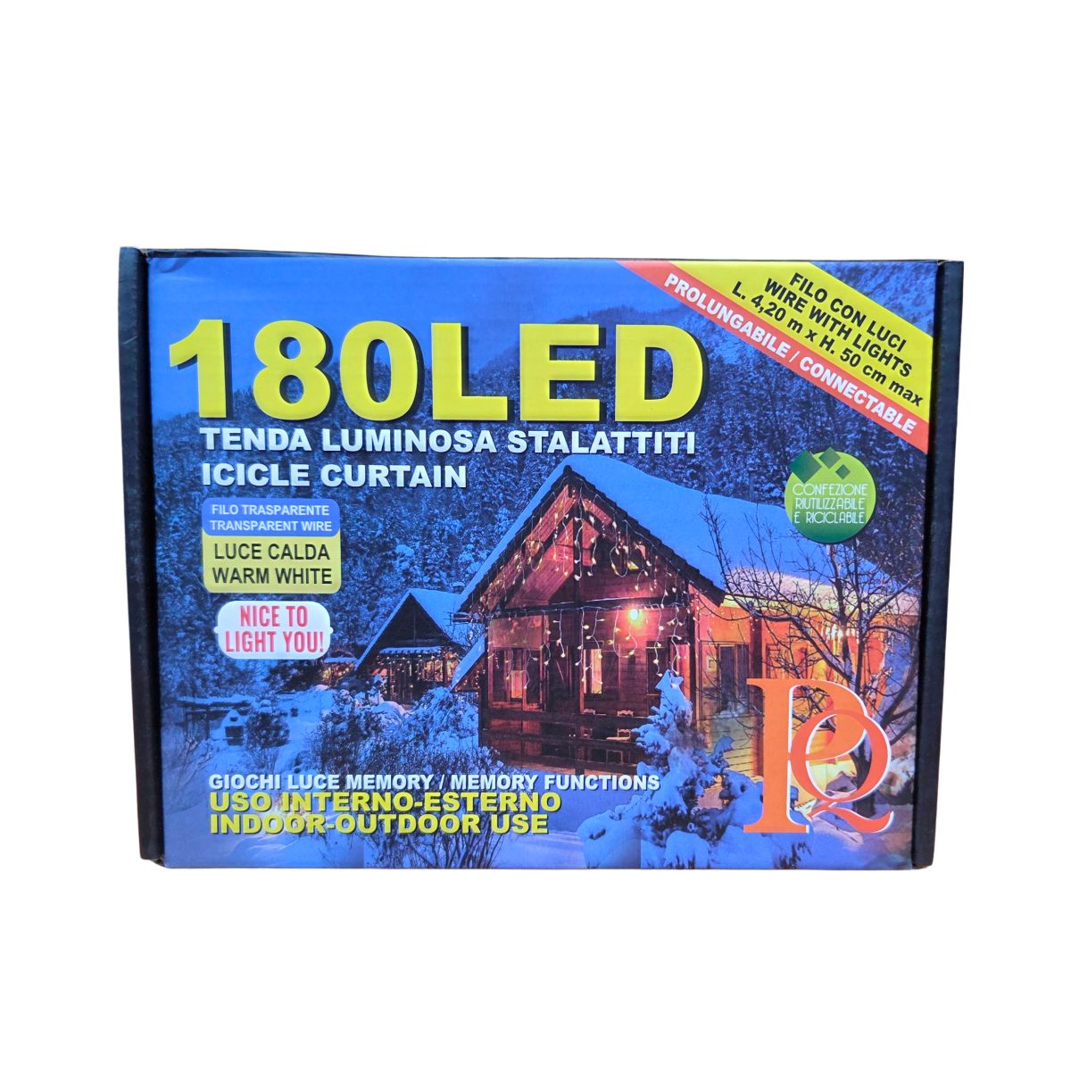 Záclona svítící venkovní 180LED, t.bílá transparentí 4,2m