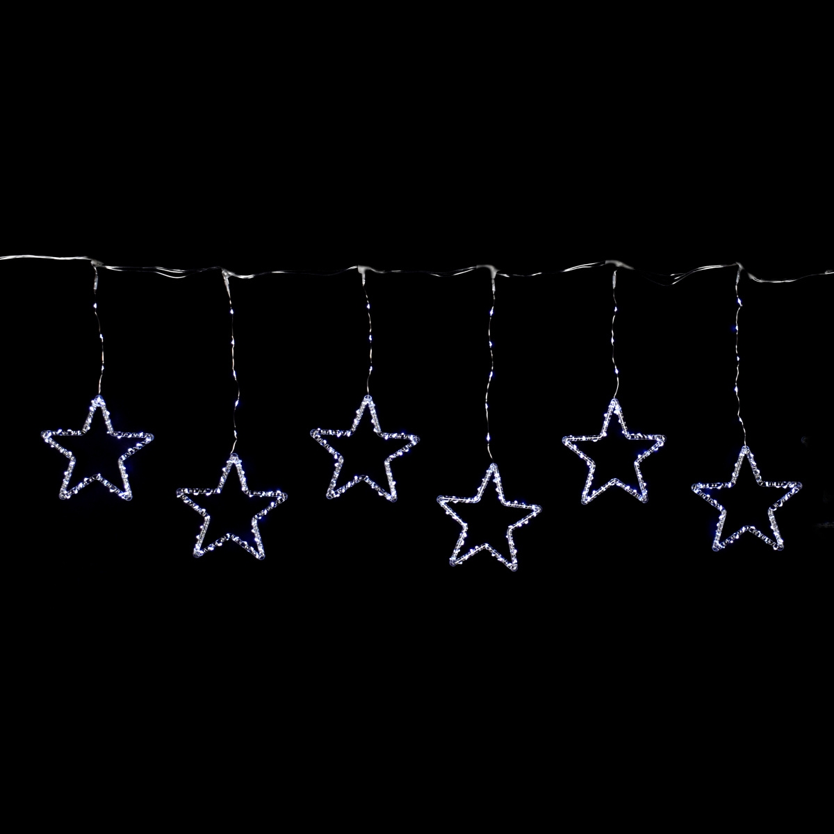 Záclona 10 hvězd svítící venkovní 440LED, st.bílá s časovačem transparentní 3,6m