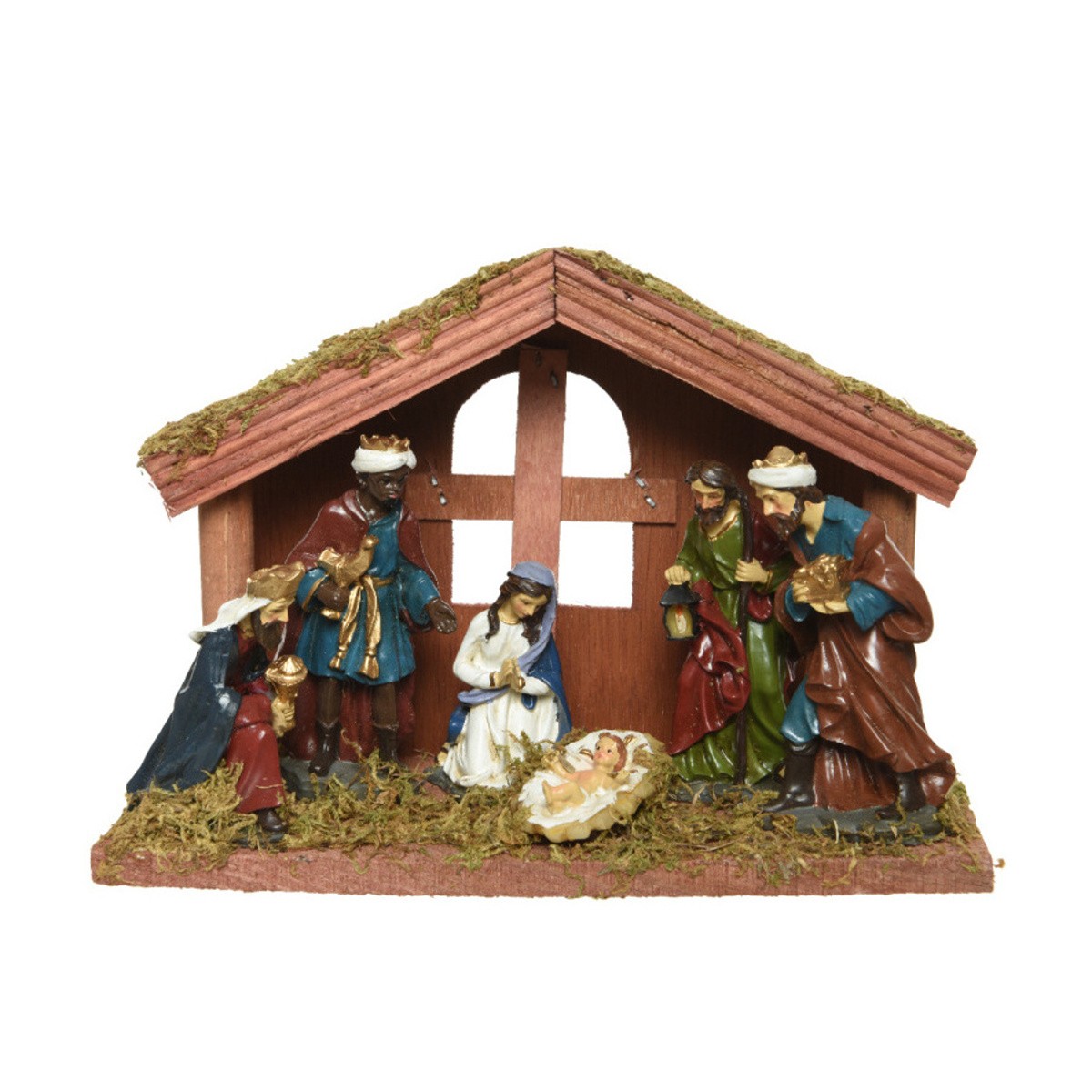 Betlém dřevěný s jesličkami a 6 figurkami 14x20cm