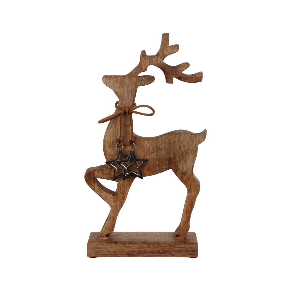 Jelen dřevěný na podstavci s hvězdami přírodní 36cm