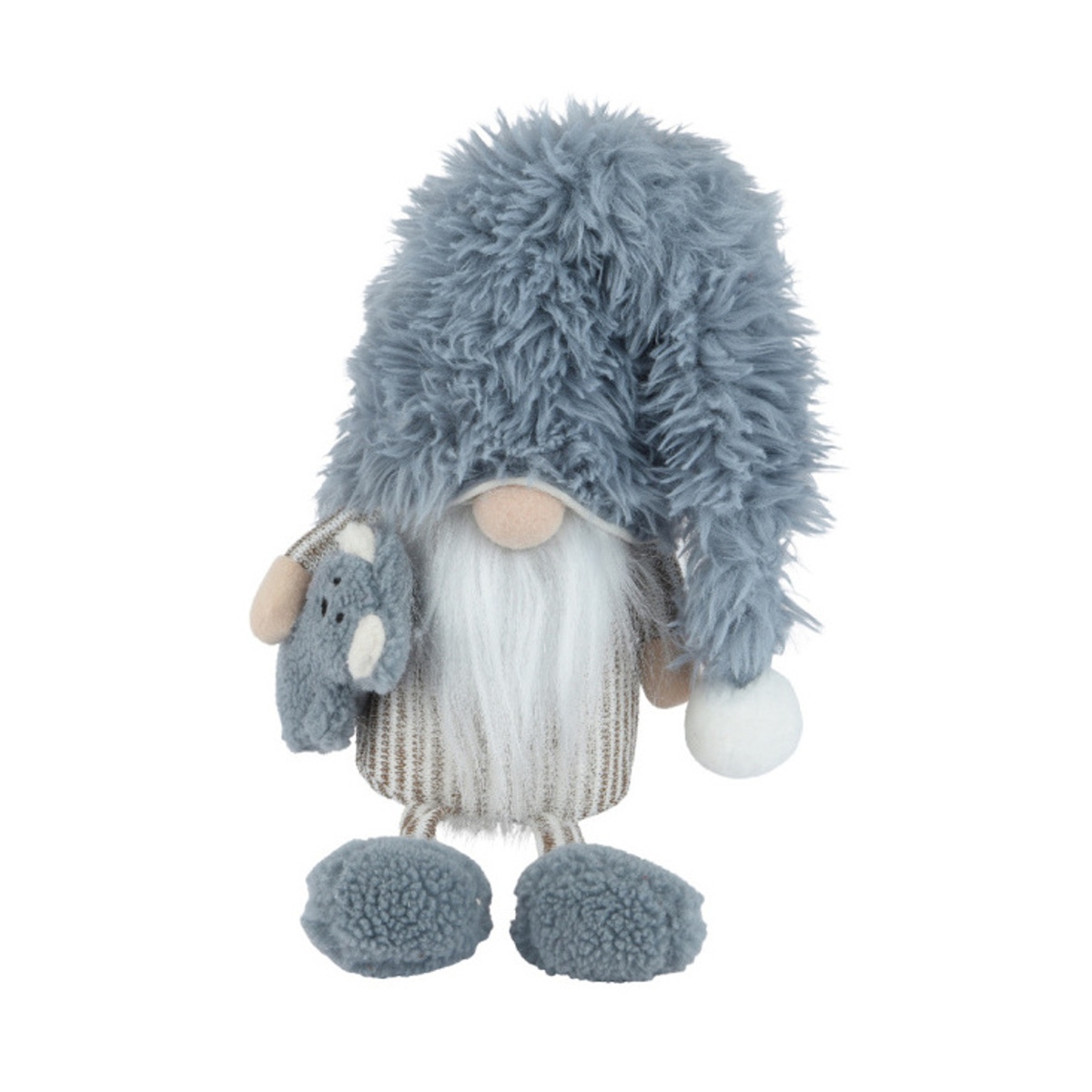 Velký sedící skřítek s plyšovým medvídkem v náručí potěší každého milovníka vánoční atmosféry. Díky své výšce 75 cm působí výrazně a stane se krásnou dominantou interiéru. Látkový design v bílo-modré barevné kombinaci dodává dekoraci elegantní a zimní vzhled. Ideální k vánočnímu stromku, na komodu nebo jako útulný prvek do obývacího pokoje.