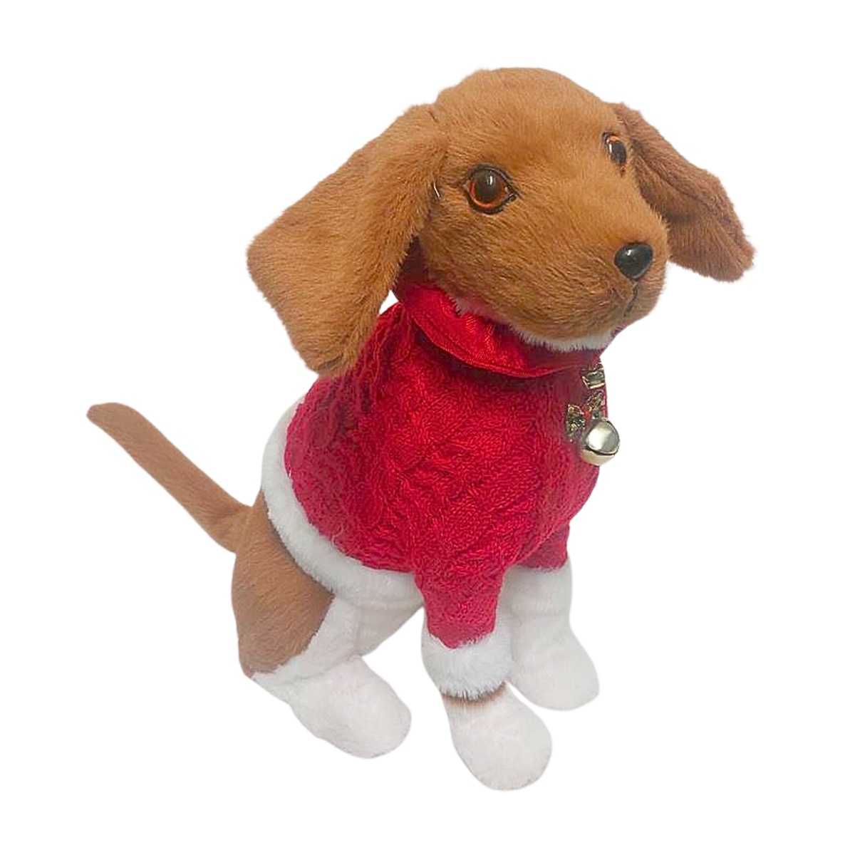 Oživte svůj interiér tímto plyšovým sedícím jezevčíkem oblečeným do zimního svetru s rolničkou. Postavička o výšce 37 cm působí hravě a svátečně. Je vhodná jako zimní či vánoční dekorace. Rolnička dodává jemný zvuk a hravý prvek, zatímco měkký plyšový materiál zajišťuje příjemný dotek a útulný vzhled. Skvěle se hodí na stůl, poličku nebo parapet a zároveň je ideálním dárkem pro milovníky psů.