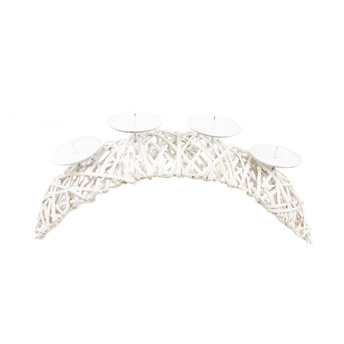 Svícen proutěný oblouk na 4 svíčky bílý 43cm