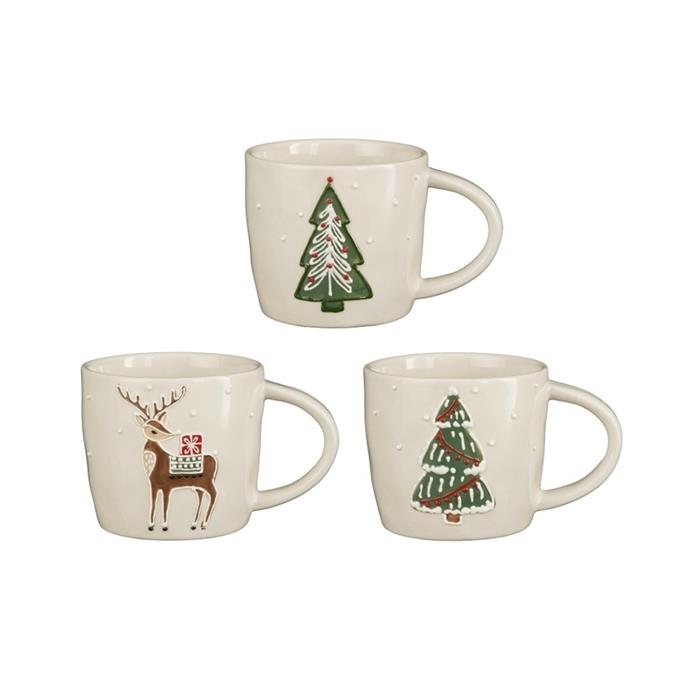 Hrnek kameninový s vánočním motivem bílý mix 10cm
