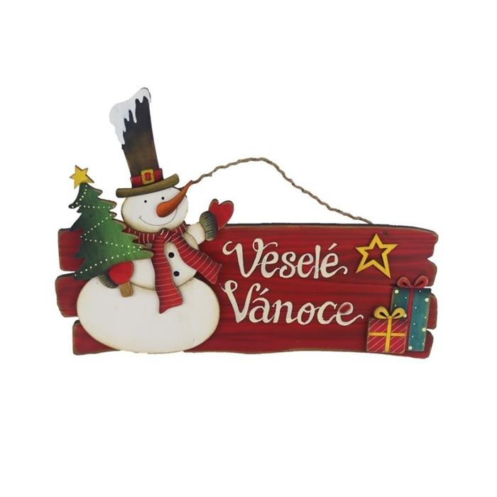 Stylová vánoční dekorace ze dřeva s motivem usměvavého sněhuláka a nápisem „Veselé Vánoce“. Skvěle doladí zimní výzdobu vašeho domova a vnese veselou sváteční atmosféru.