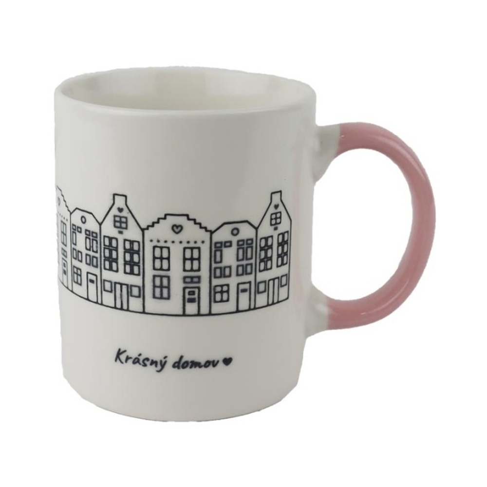 Hrnek porcelánový KRÁSNÝ DOMOV s domky růžovo-bílý