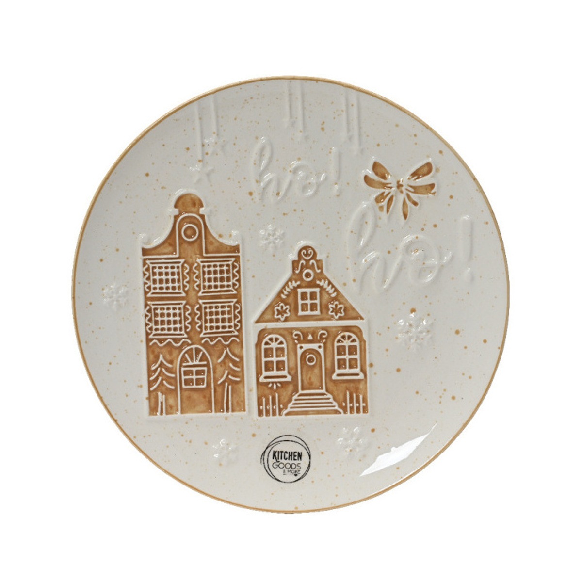 Talíř kulatý dolomitický KITCHEN GOODS s domky hnědo-bílý 20,5cm