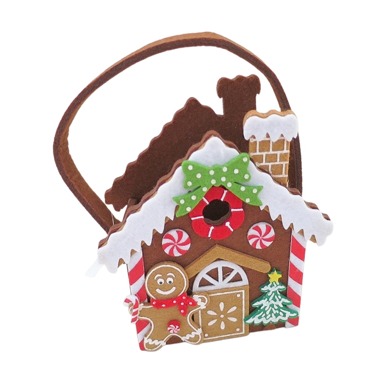 Kouzelná vánoční taštička z plsti ve tvaru perníkové chaloupky potěší děti i dospělé. Díky krásnému motivu a uchu je ideální na drobné dárky, cukroví nebo čokoládky pro malé návštěvníky.