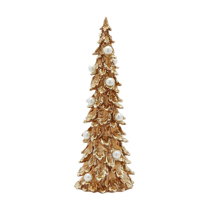 Přineste do svého domova nádech elegance a klidu s tímto jemně zpracovaným stromem z polyresinu, zdobeným perličkami. Každý detail je pečlivě vytvořen, aby strom působil přirozeně a díky zlaté barvě zároveň luxusně.