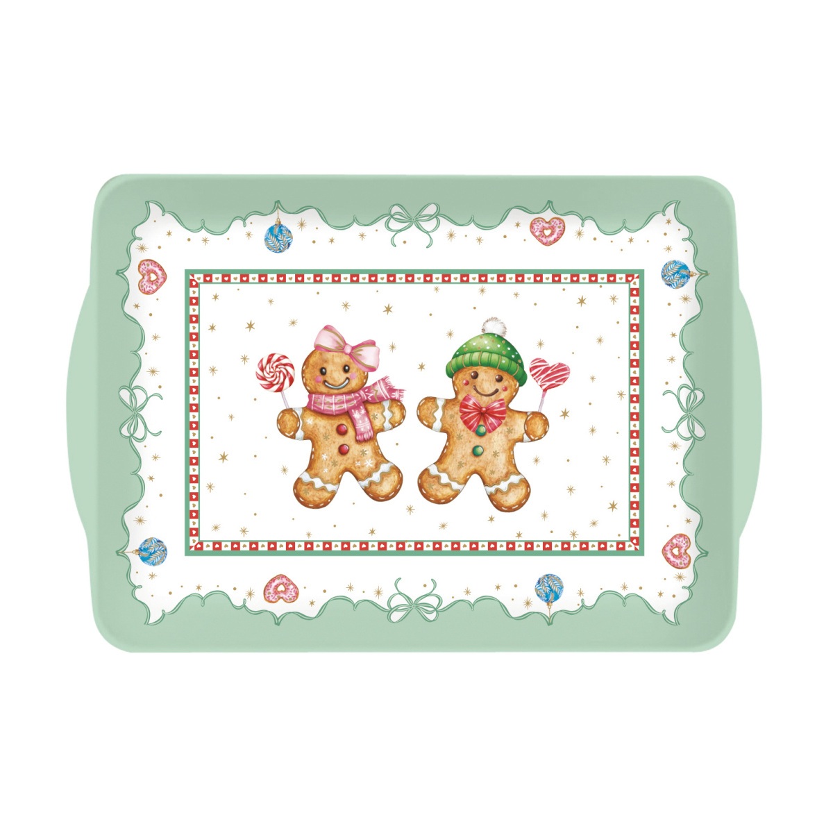 Vánoční servírovací tác SWEET CHRISTMAS z kvalitního porcelánu je ideální pro stylové servírování cukroví, dezertů, ovoce či drobných pochutin. Díky dvěma praktickým uchům se snadno přenáší, a jeho hravý vánoční motiv s perníčky a sladkostmi dodá vašemu stolování kouzelnou sváteční atmosféru.
