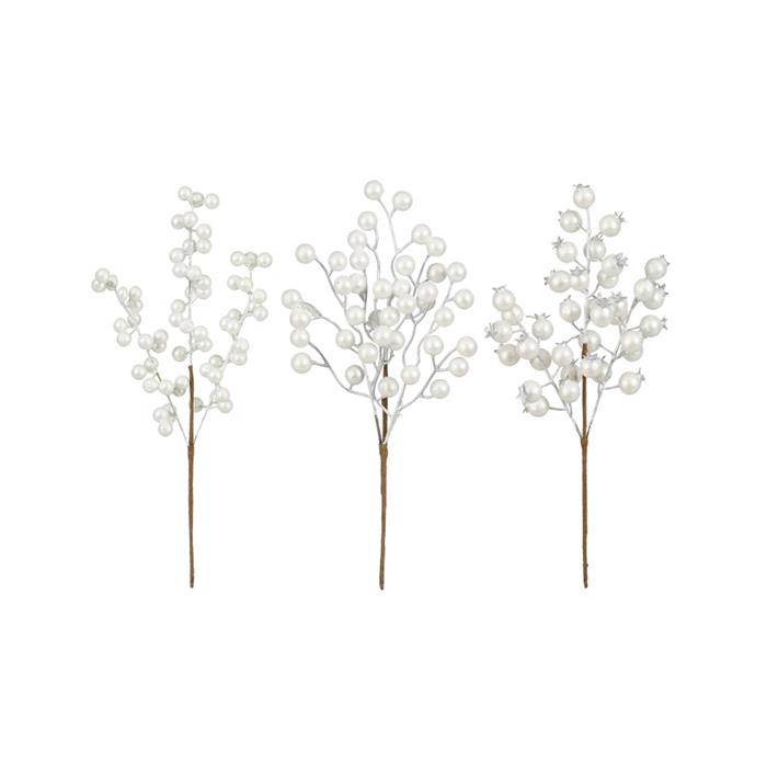 Dekorační větev s umělými bobulemi v mixu tvarů. Větev je ideální pro celoroční aranžmá i sezónní dekorace, protože se snadno kombinuje s dalšími přírodními i umělými prvky. Větev v mixu provedení. Pokud si přejete konkrétní variantu, napište ji do poznámky, pokusíme se vyhovět. V případě nedostupnosti bude odeslán náhodný kus.