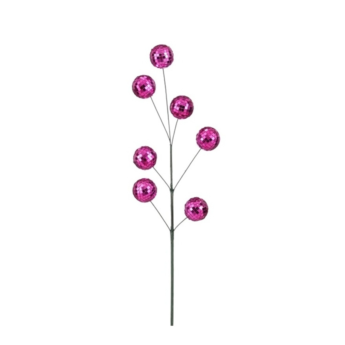 Větev umělá se zrcadlovými koulemi růžová 60cm