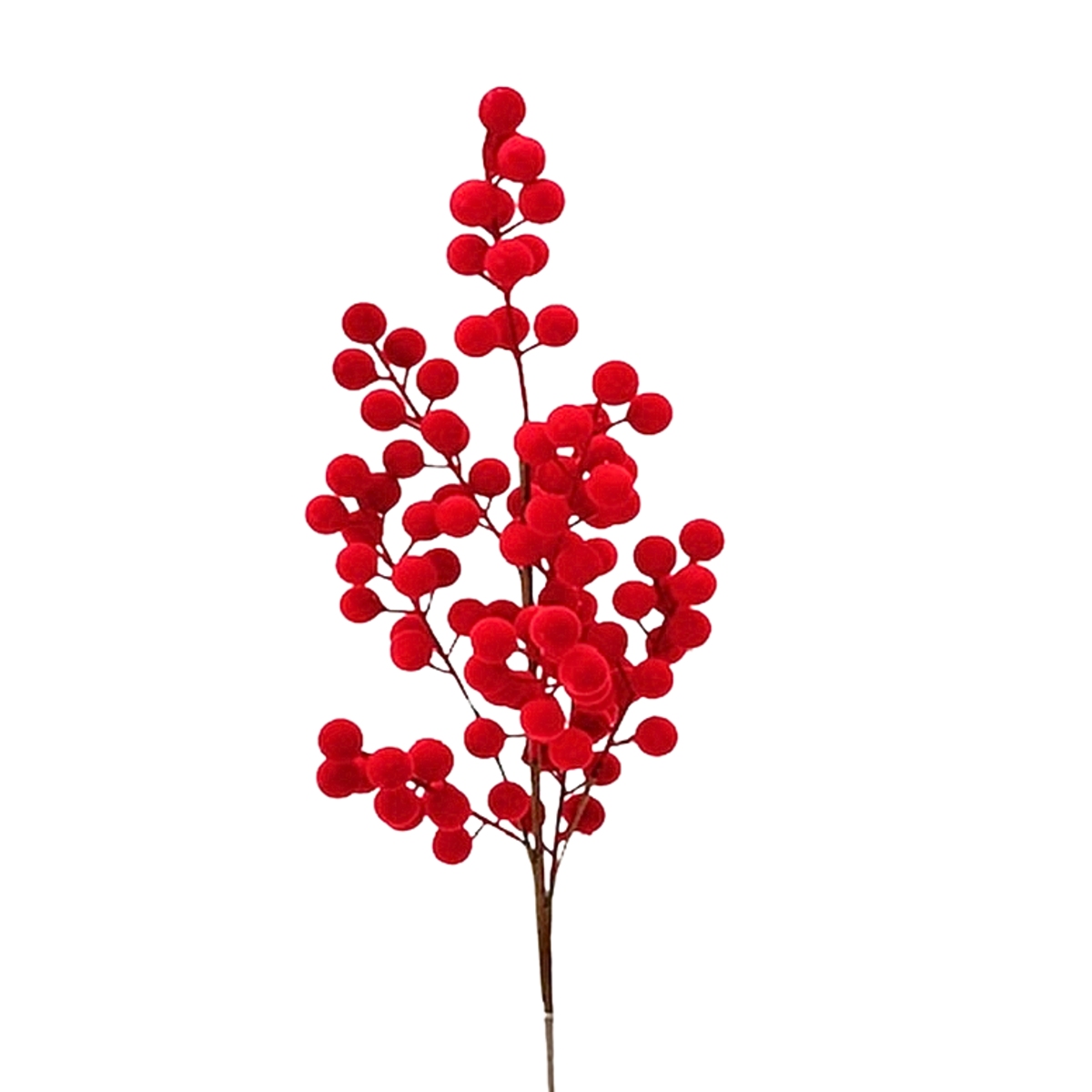 Tato umělá větev s červenými sametovými bobulemi přináší do vánoční výzdoby tradiční barvu. Sametové bobule dodávají aranžmá hloubku, hebkost a výraznou barvu, která se krásně kombinuje s větvičkami jehličí nebo sušenými dekoracemi. Větev je ideální pro zdobení věnců, stolů, vánočních svazků nebo aranžmá do vázy.