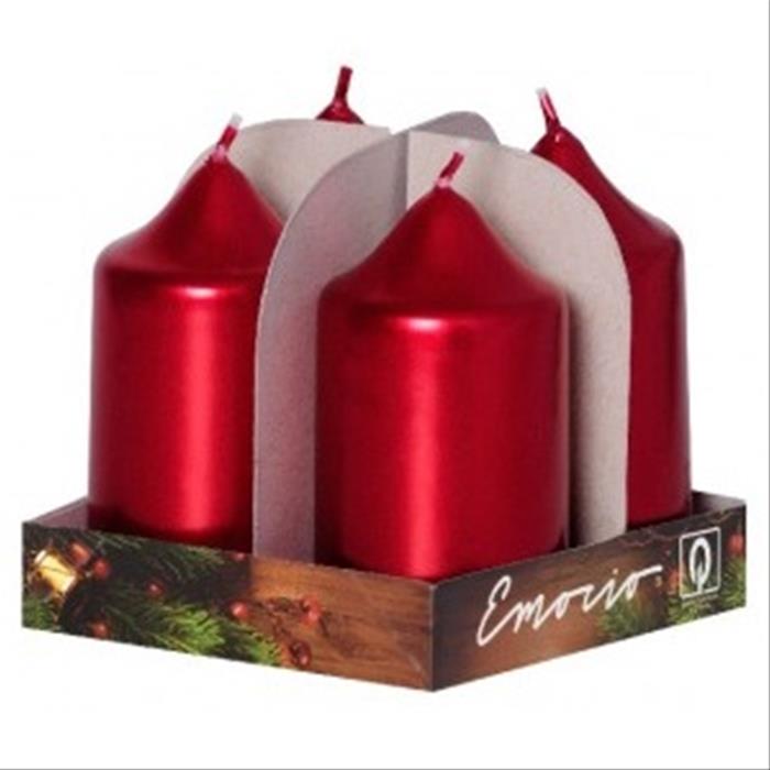 Svíčka válcová metalická červená 7,5cm/4ks