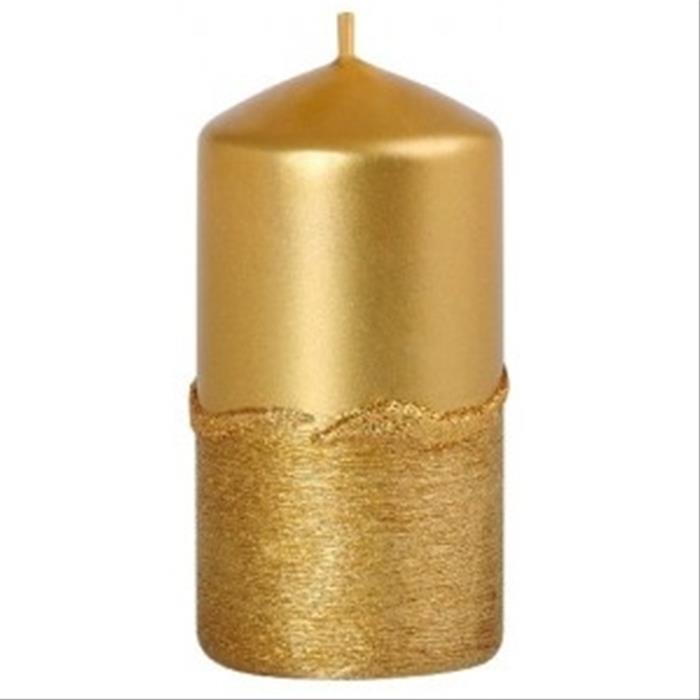 Svíčka válcová drápaná vlnka zlatá 10cm