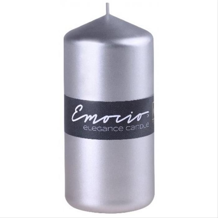 Elegantní metalická svíčka EMOCIO ELEGANCE ve stříbrném provedení, výška 15 cm – luxusní doplněk pro slavnostní vánoční atmosféru..