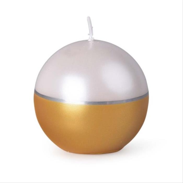 Dekorativní svíčka ve tvaru koule, bílo-zlaté provedení, průměr 7 cm – stylový doplněk pro sváteční i zimní aranžmá.