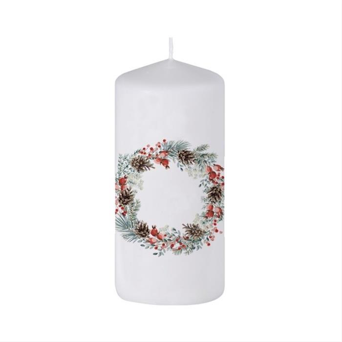 Dekorativní válcová svíčka pro sváteční dekoraci.