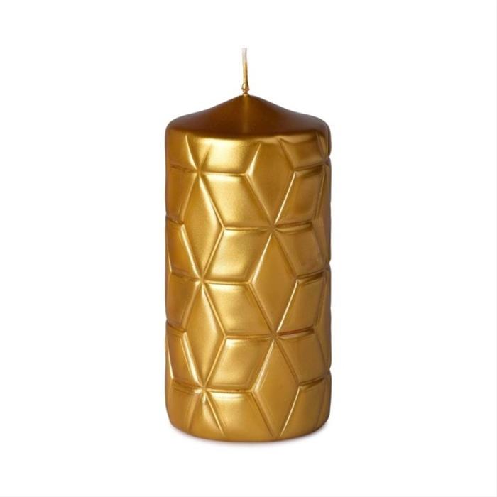 Svíčka válcová s ornamenty metalická zlatá 14cm
