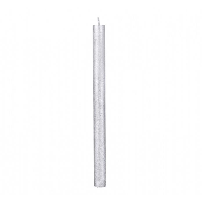 Svíčka dlouhá RUSTIC metalická stříbrná 30cm