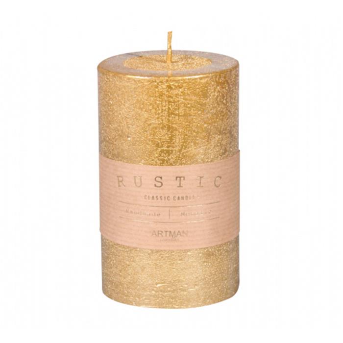 Svíčka válcová RUSTIC metalická zlatá 12cm