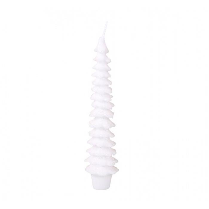 Elegantní svíčka ve tvaru vánočního stromku přinese do vašeho domova kouzelnou zimní atmosféru. Sněhově bílý povrch s jemným třpytem připomíná čerstvě zasněžený strom a vytváří dokonale sváteční náladu. UPOZORNĚNÍ: Přihoření nenechávejte svíčku bez dozoru a vždy ji umístěte na nehořlavou podložku.