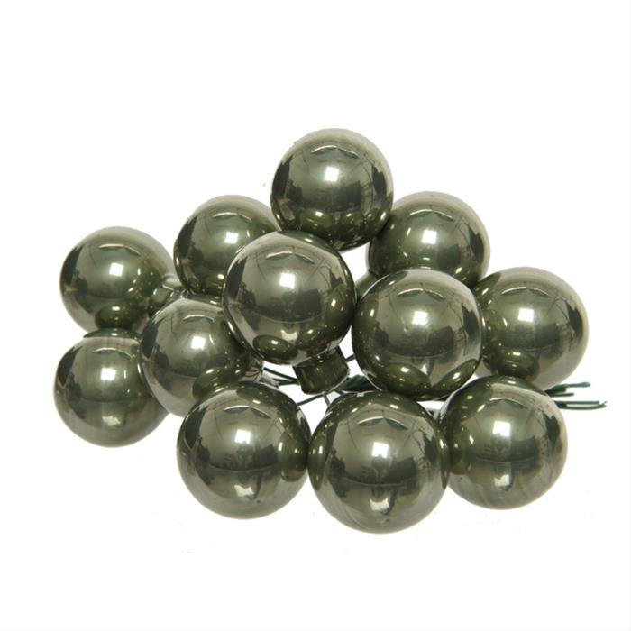 Svazková skleněná koule s drátkem 2,5cm lesklá zelená 12ks