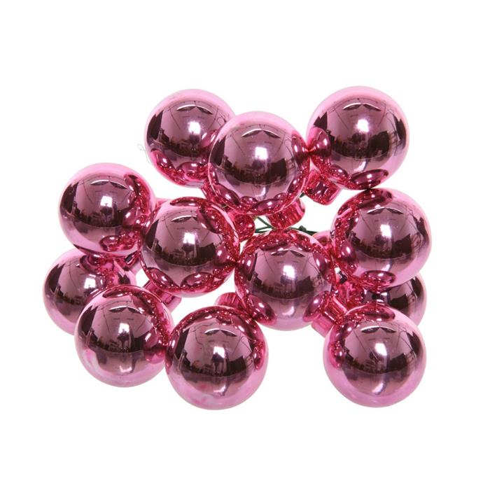 Svazková skleněná koule s drátkem 2,5cm lesklá růžová 12ks