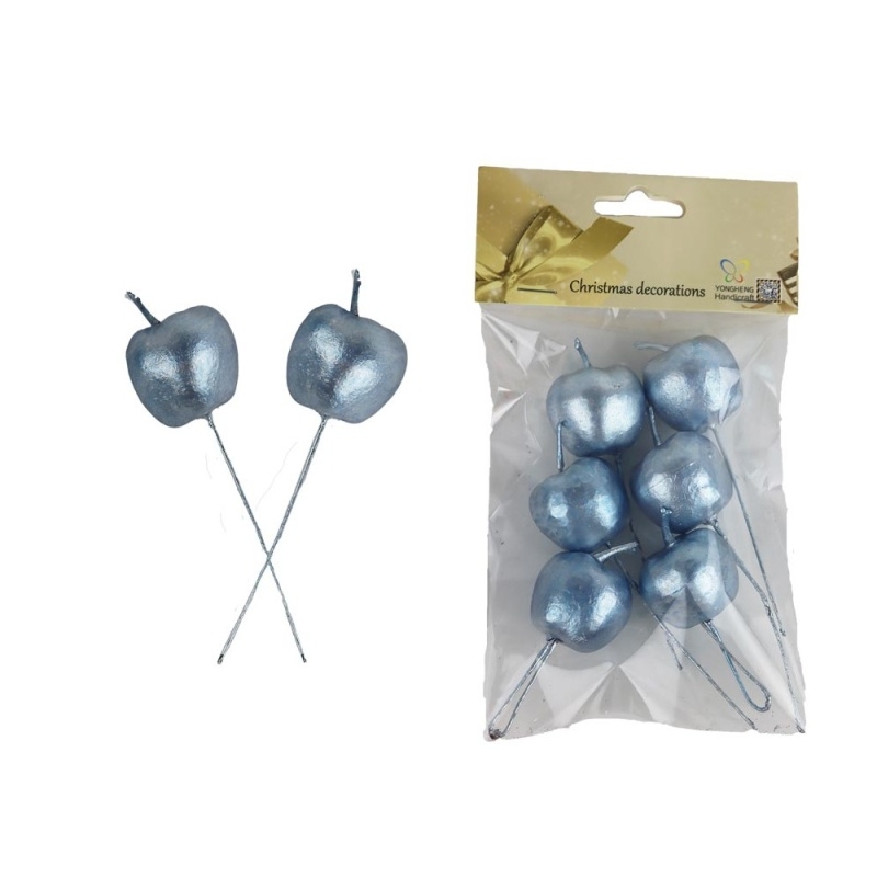 Sada 6 světle modrých umělých jablek na drátku přidá vašim podzimním i vánočním dekoracím originální barevný prvek. Díky drátku se snadno upevní do věnců, květinových vazeb nebo na vánoční stromek. Skvělá přízdoba pro stylové a trvanlivé aranžmá.