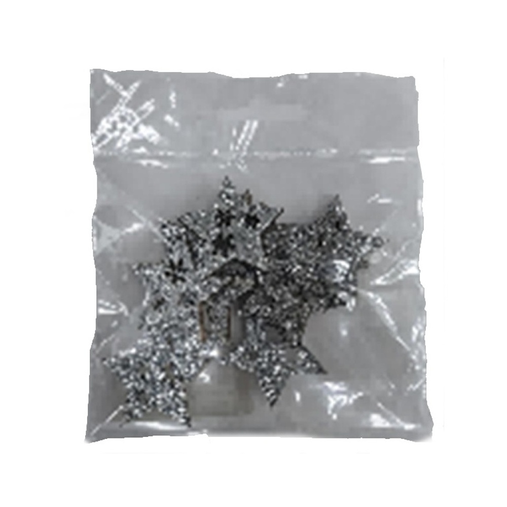 Přízdoba hvězda dřevěná s glitry stříbrná 12ks