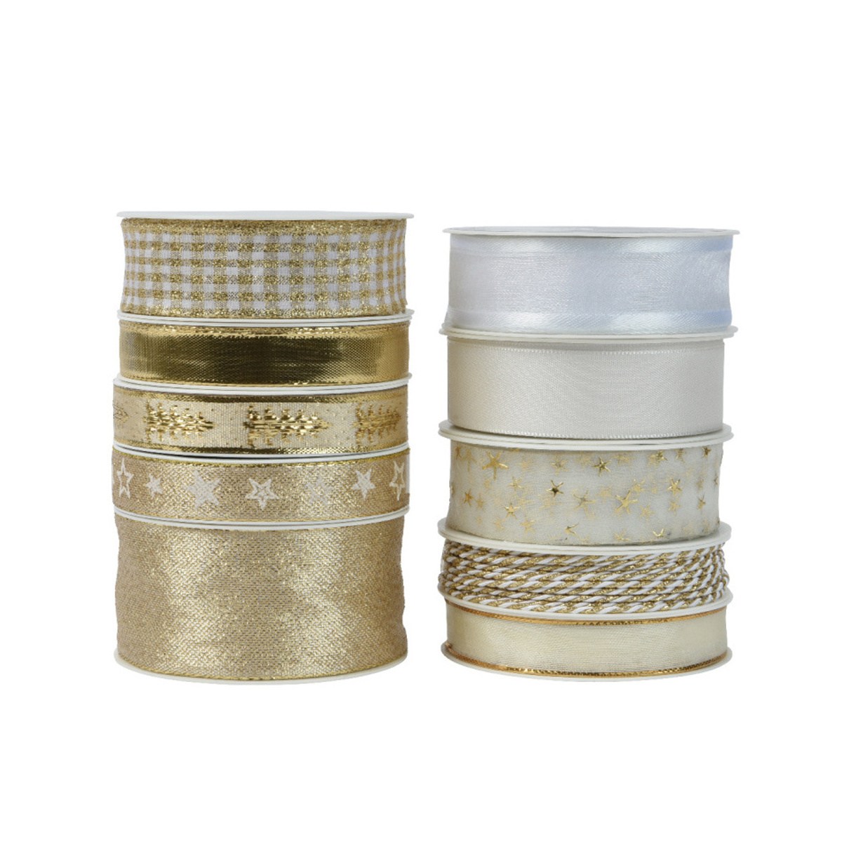 Stuha vánoční s drátkem zlatá/bílá mix 2-40mm x 2-4m