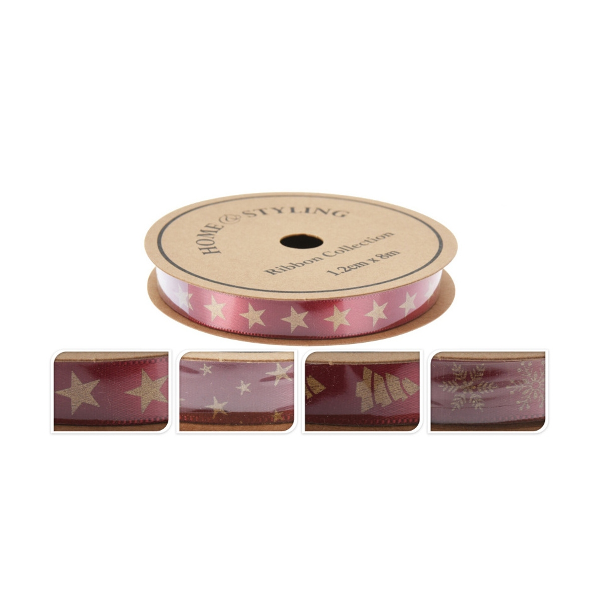 Stuha vánoční polyesterová zlato-červená 1,2cm x 8m
