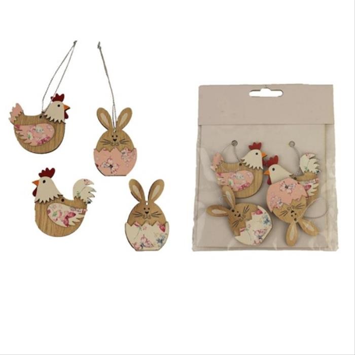 Ozdoba slepice a zajíc 4ks, 5,5cm