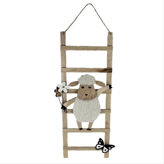 Originální interiérová dekorace v podobě přírodního dřevěného žebříku s roztomilou plyšovou ovcí dodá vašemu domovu útulnou a hravou atmosféru. Kombinace přírodního dřeva a měkkého plyše vytváří harmonický a velmi příjemný vzhled.