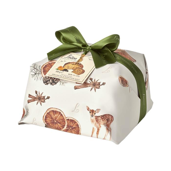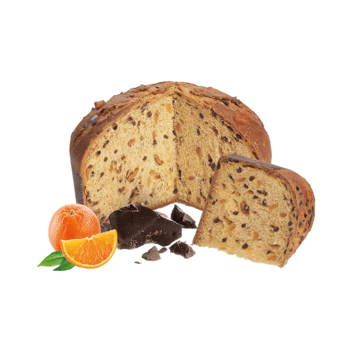 Tradiční italské panettone s kandovaným pomerančem a čokoládou. Panettone kombinuje nadýchané, jemné těsto s šťavnatými kousky kandovaného pomeranče a kvalitní čokoládou, která se rozplývá při každém soustu.